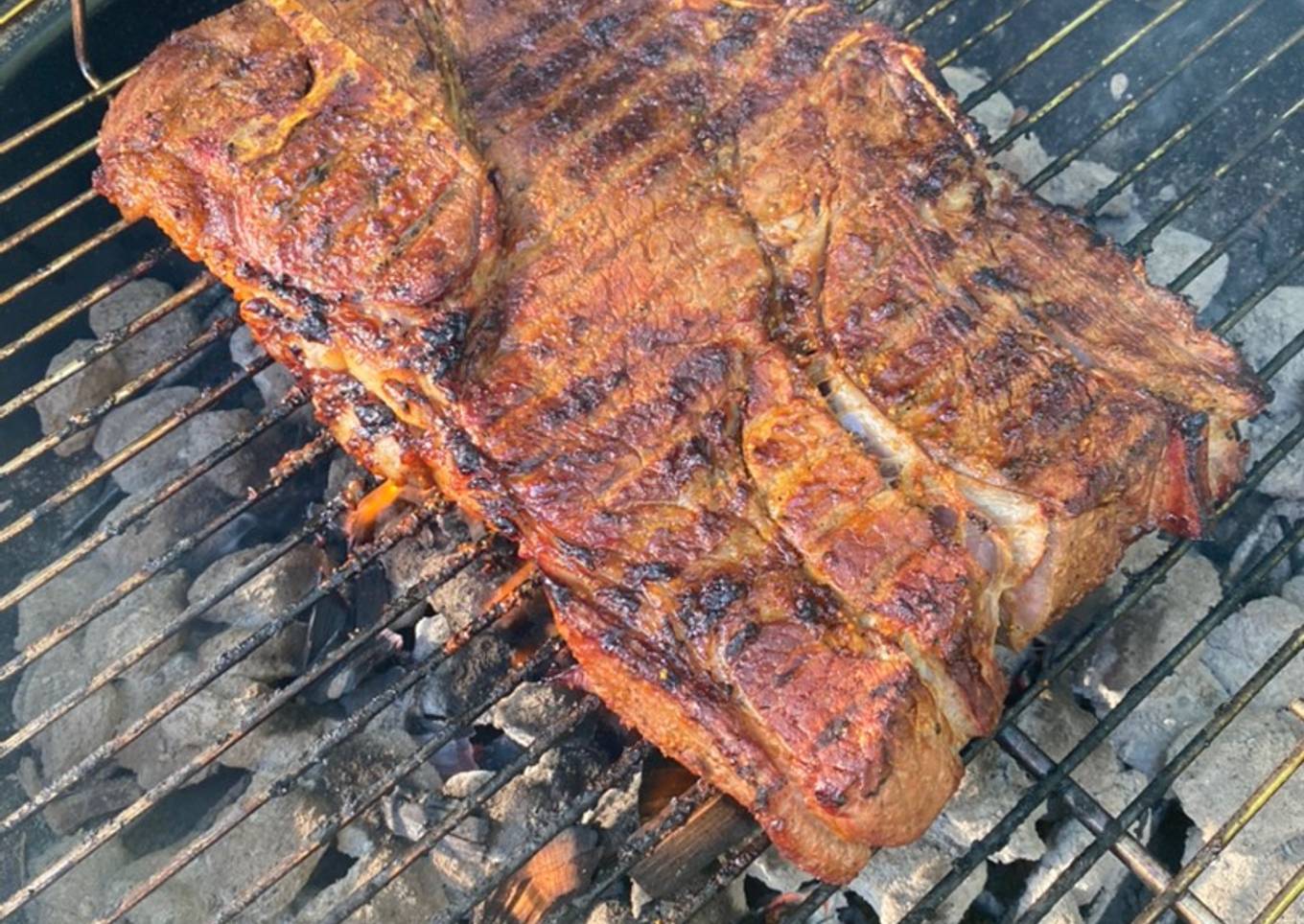 I was looking for an excuse to barbecue. I had two thick pork chops that were frozen... didn’t feel like defrosting them. I went food shopping and cringed at paying 20 bucks for this steak... but found my excuse to barbecue.