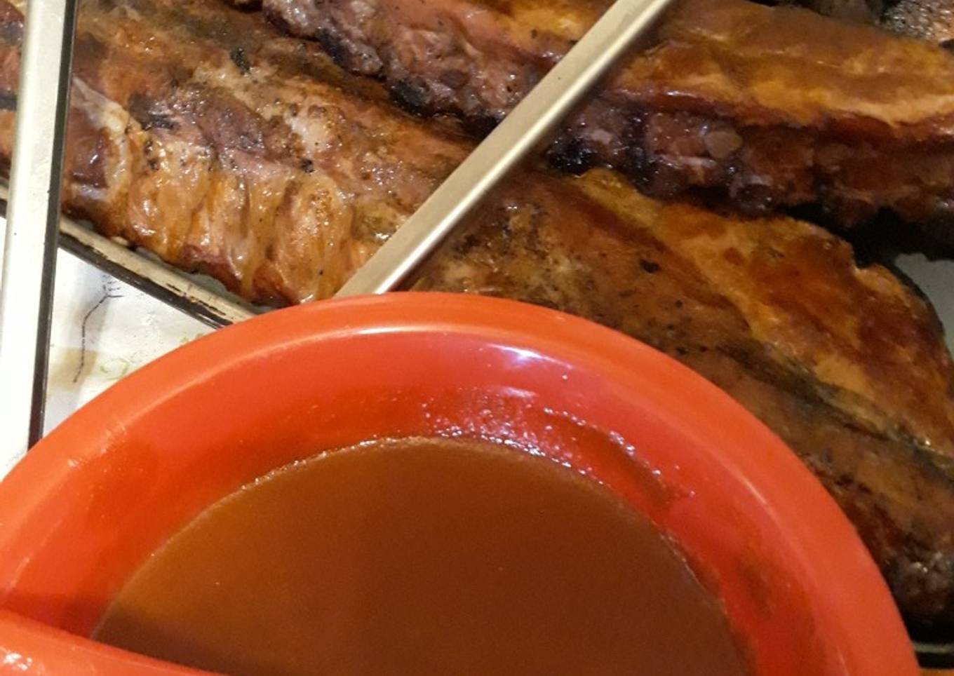 - Measure in the spices, bacon drippings, powdered mustard, and vinegar. Whisk together and heat simmering for 25 minutes. It's ready, this was basted on porkchops and baby back ribs, and grilled. I hope you enjoy!!!