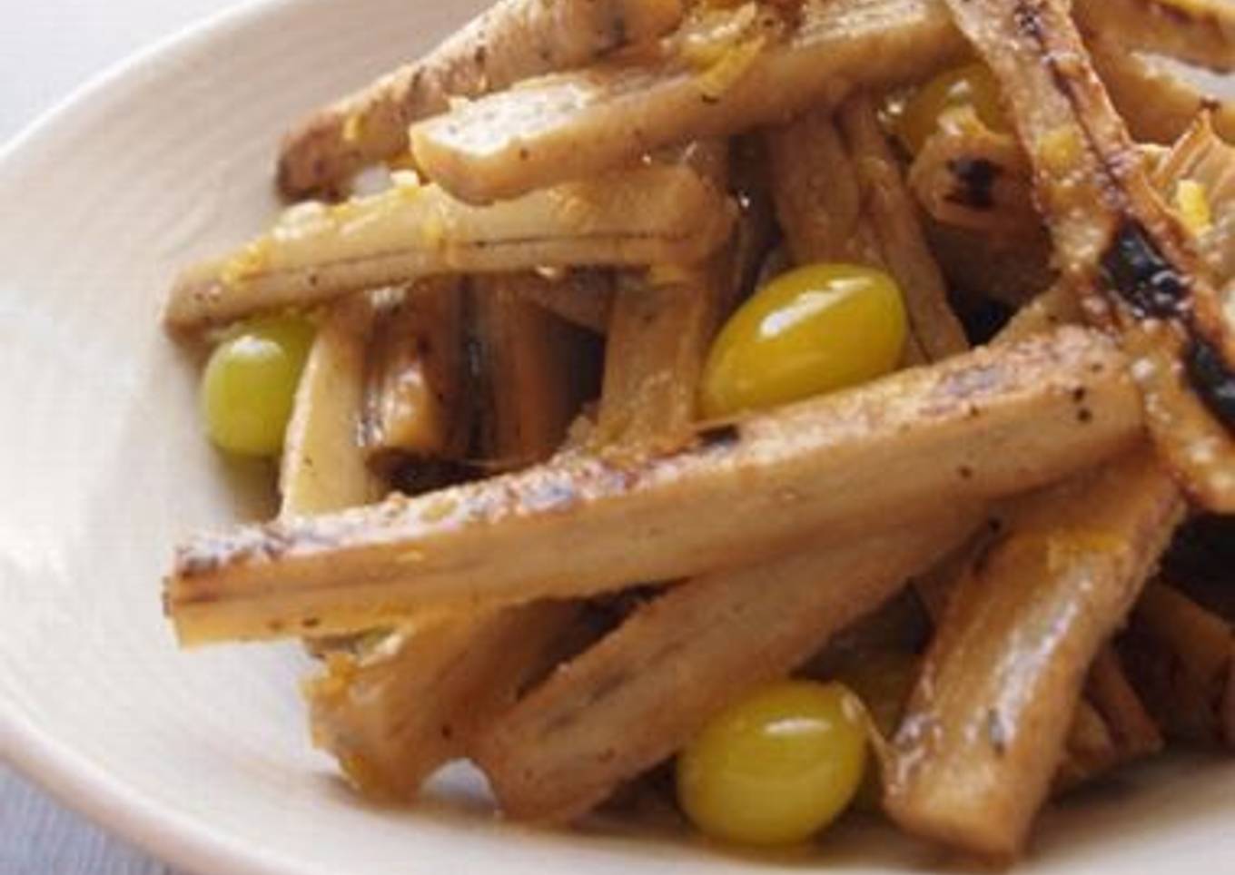 - Coat a frying pan with vegetable oil (not listed) and cook the burdock root until well-browned.