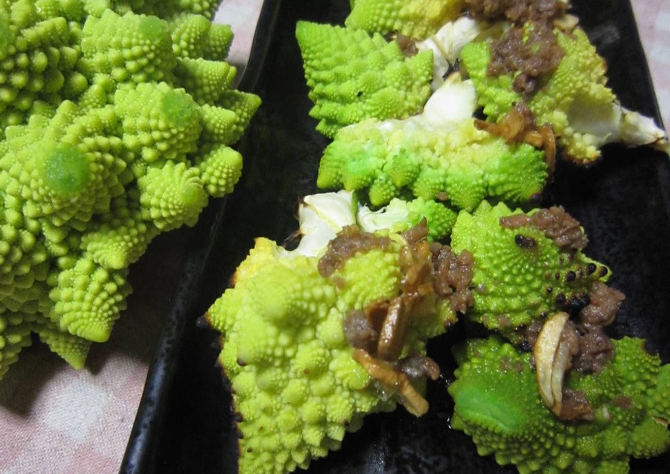 Romanesco is a new vegetable that has recently been getting a lot of attention. With a tip from the radio, I decided to grill them since simply boiling them sounded boring. After grilling, I added some garlic and anchovies to make it more flavorful.
