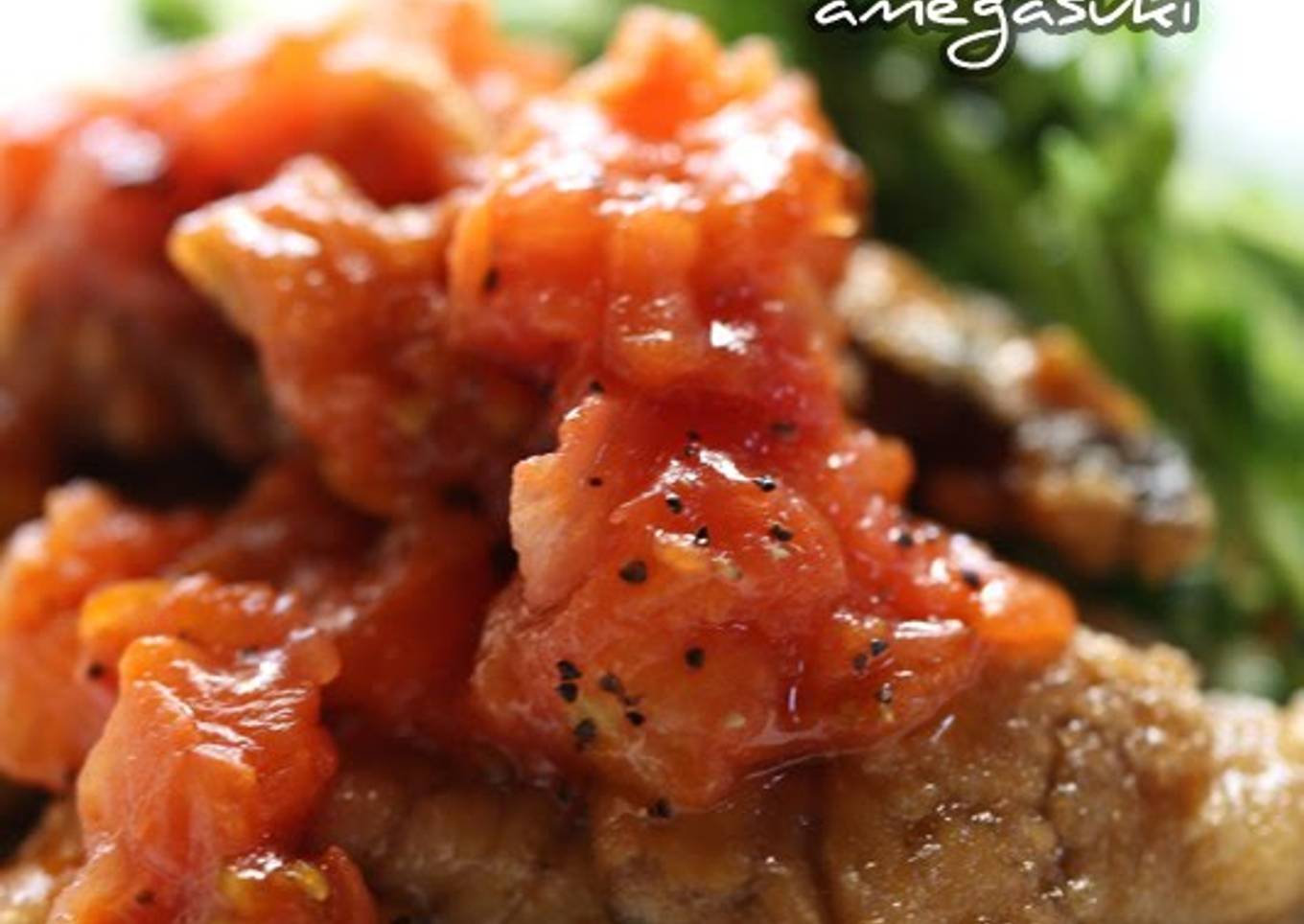 I made fried Tatsuda-style fish taste lighter and more delicious by adding tomatoes.