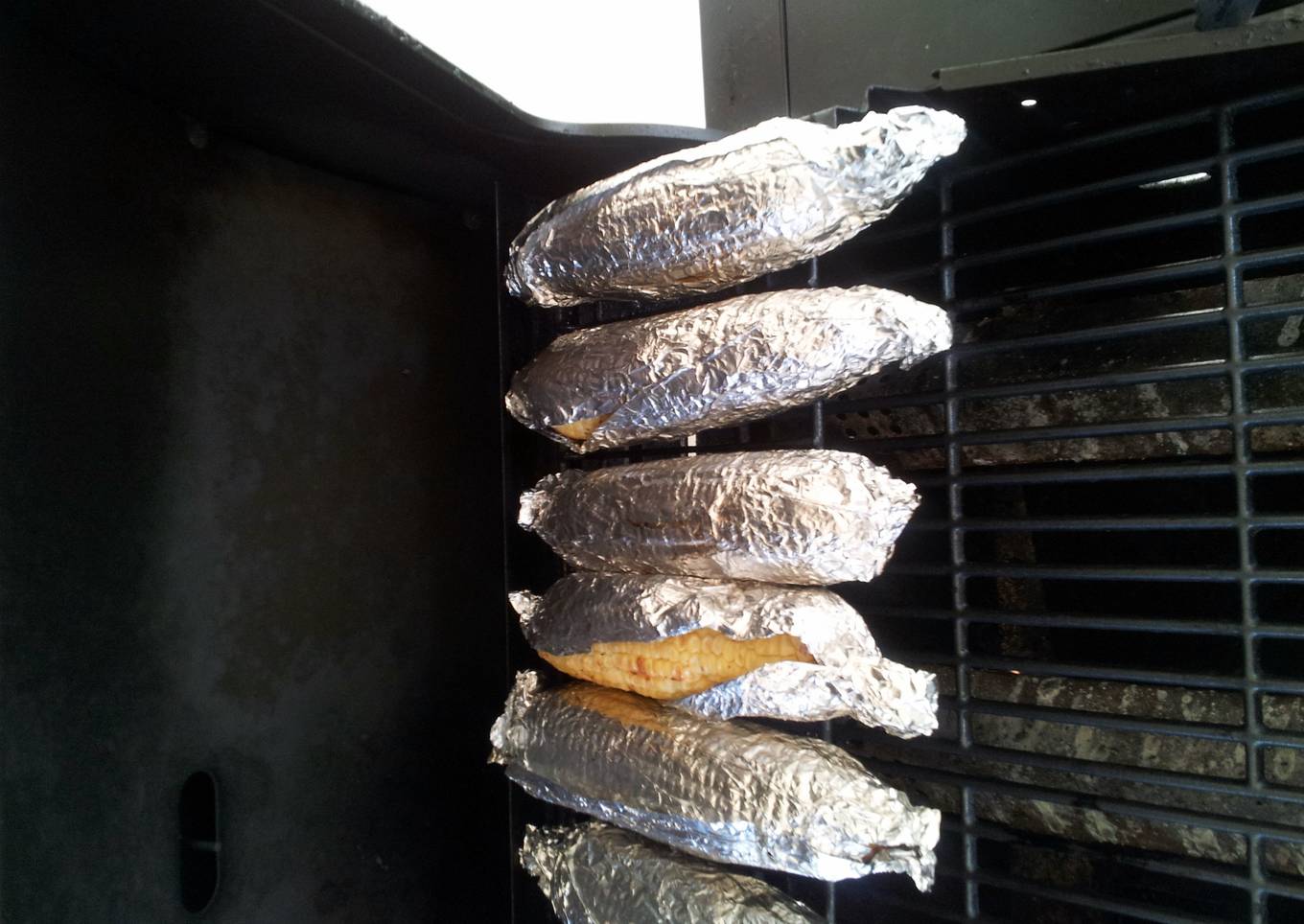 - Place 1 ear on a piece of tin foil spread butter over 1 side