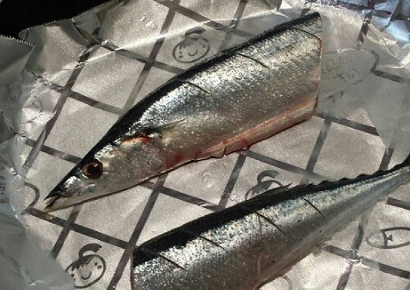 - When the Pacific saury is done cooking, grasp the foil or parchment sheet and the fish at the same time. Slide it out just like that onto a plate! This way, you won't lose the delicious oils of the Pacific saury.