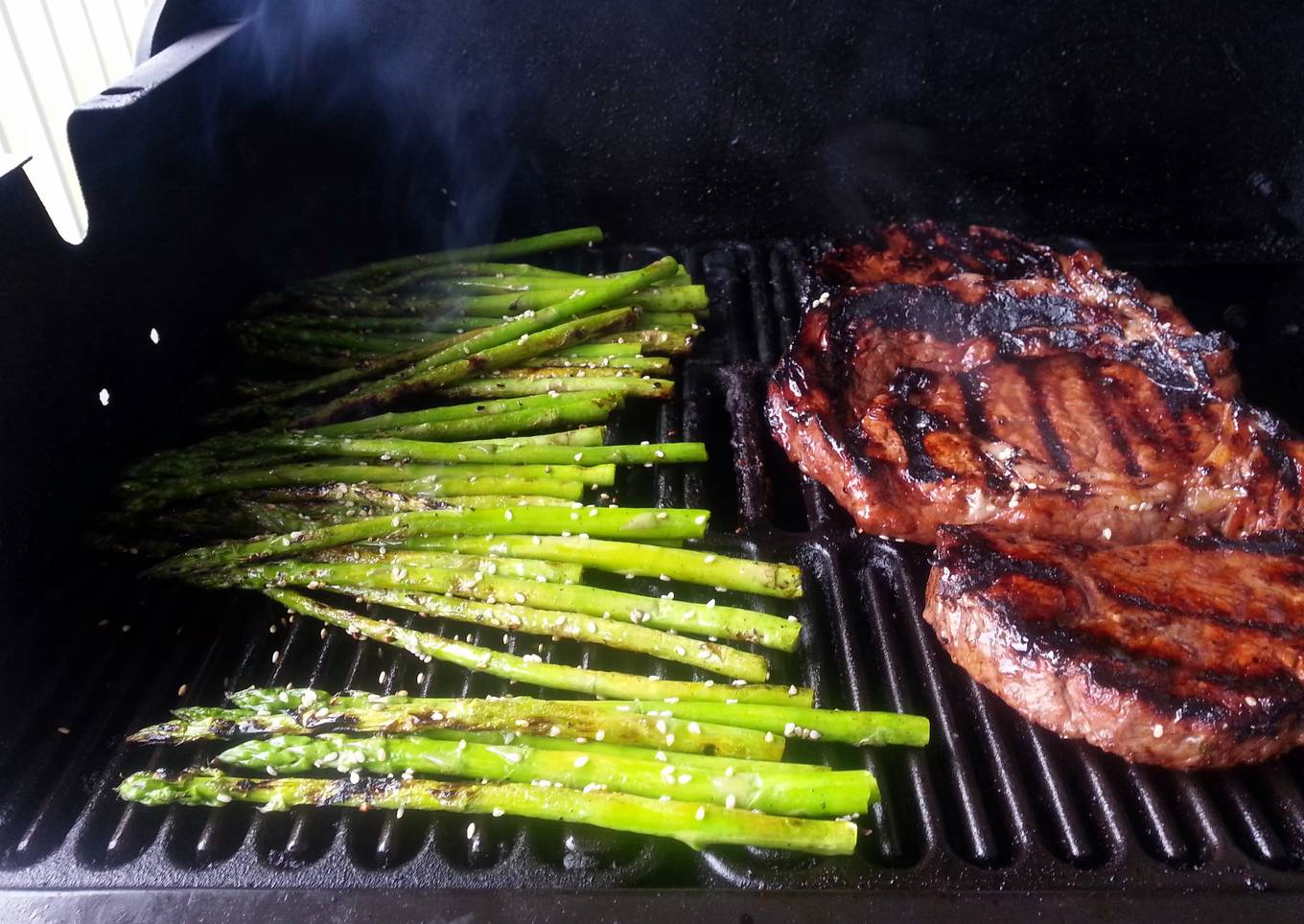 - Grill asparagus until tender. Approximately 7 minutes over high heat.