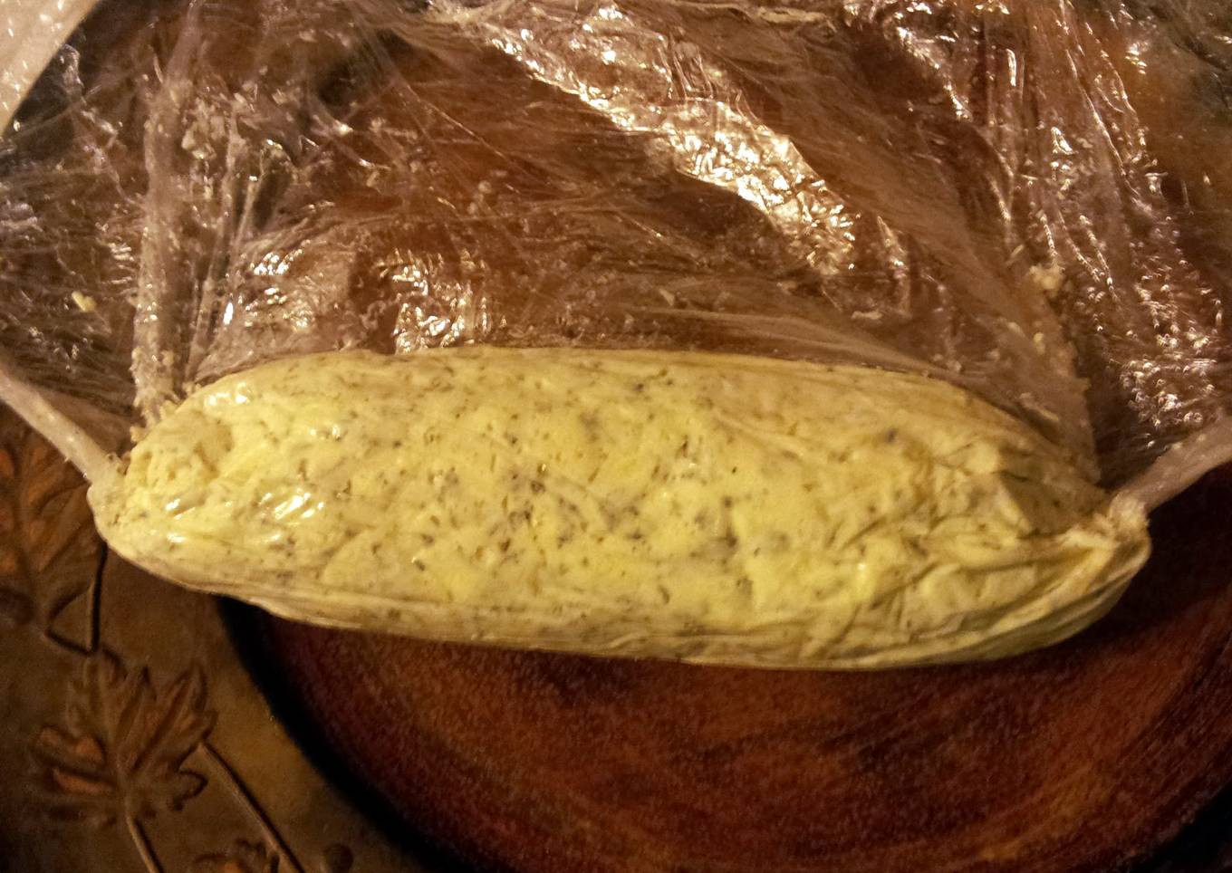 - put butter on the cling wrap. make a cylinder out of the butter. wrap in cling wrap and aluminum foil. wrap like a jolly rancher candy.