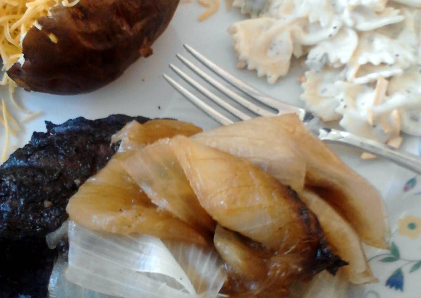 Best darn onion to ever touch my steak! Kuddos to my fiancé for this wonderfulness..