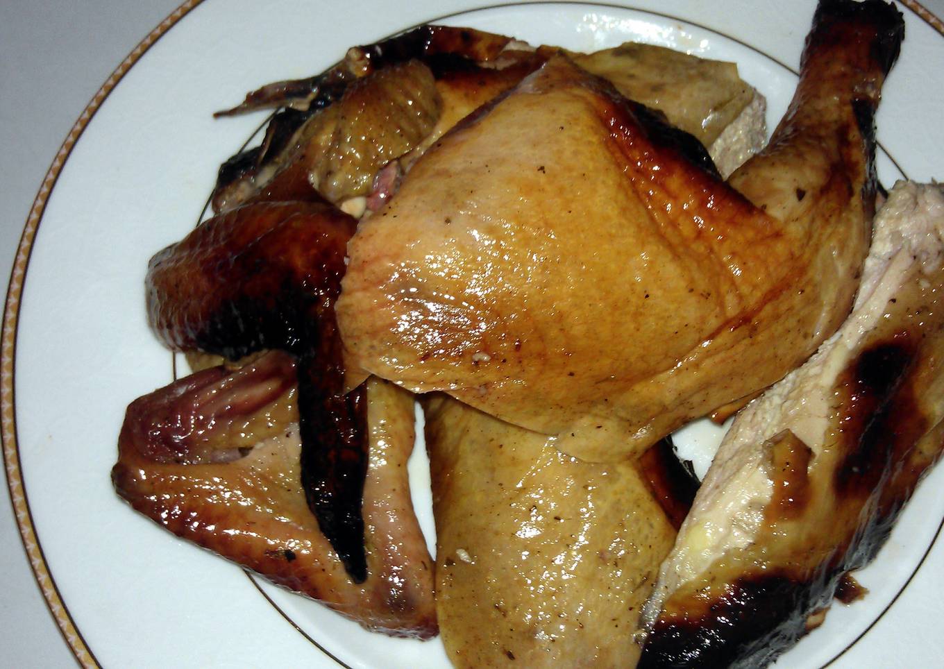 - charcoal grill for 45 - 60 mins. [ brush chicken skin with marinade 2 every 15 mins.