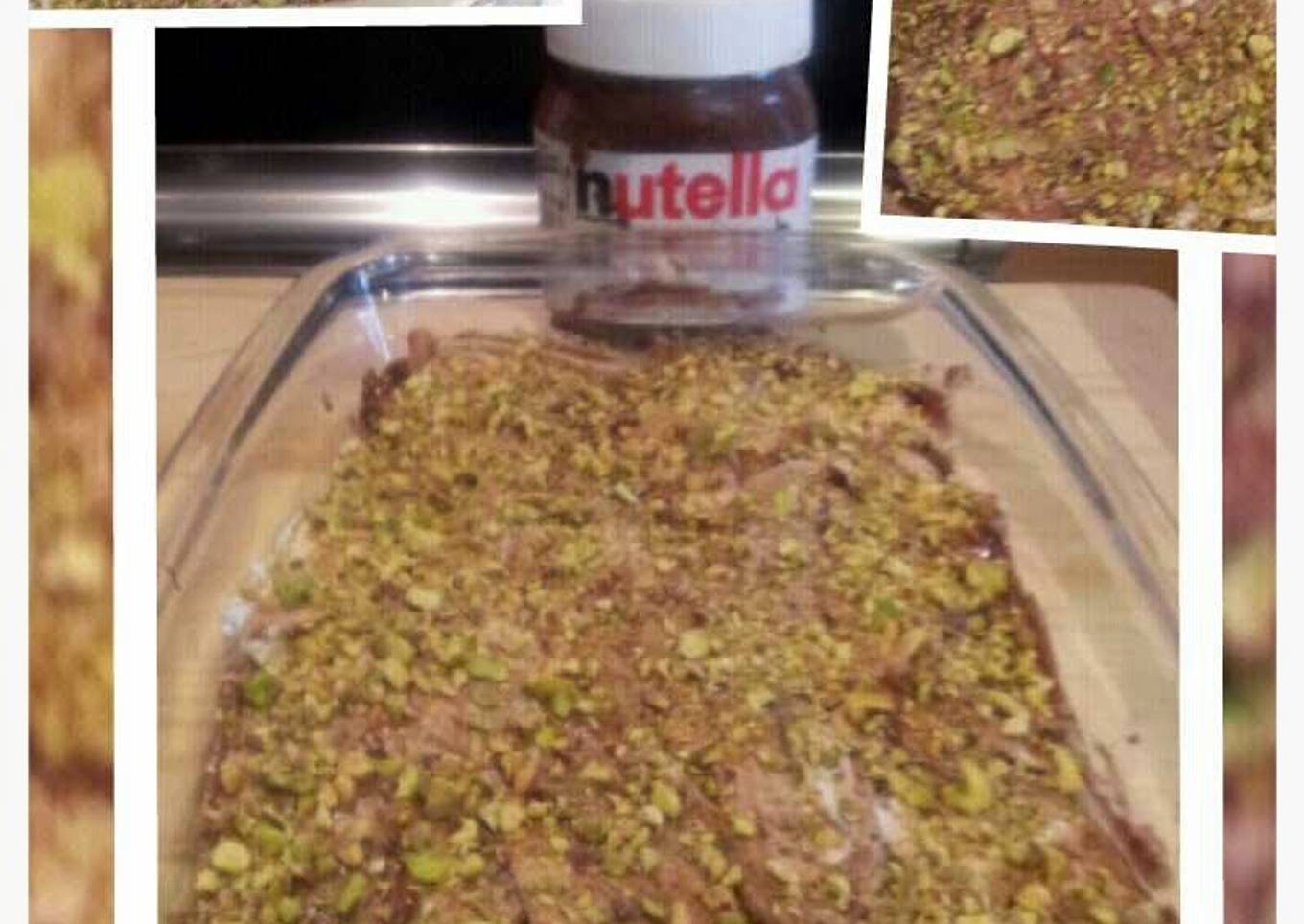 - On a large serving platter, arrange pineapple slices. Pour the nutella sauce, top with mascarpone and sprinkle pistachios all over.